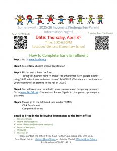 2025/2026 Incoming Kindergarten Parent Information Night
